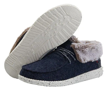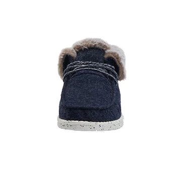 As the temps drop outside, grab a pair of these Navy Britt Hey Dude Casual Shoes. You will love fun stylish ankle height shoes, they are made for all day comfort without lacking style!Â